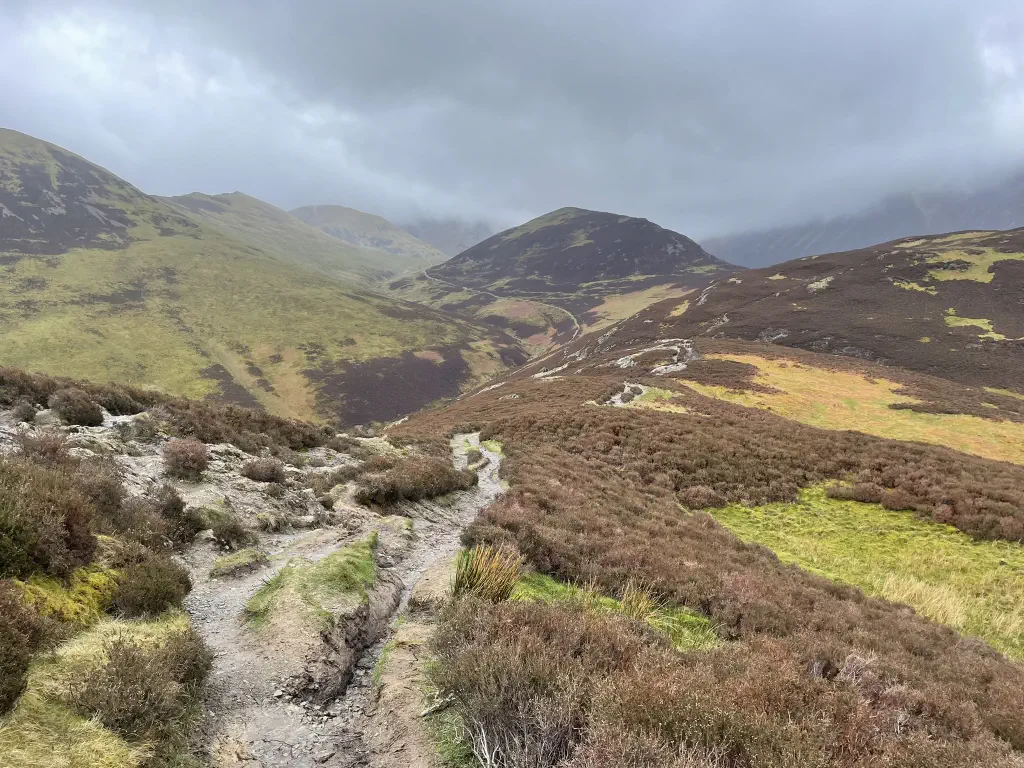 Long stretches of steep uphill, sometimes with short scrambling sections